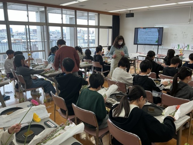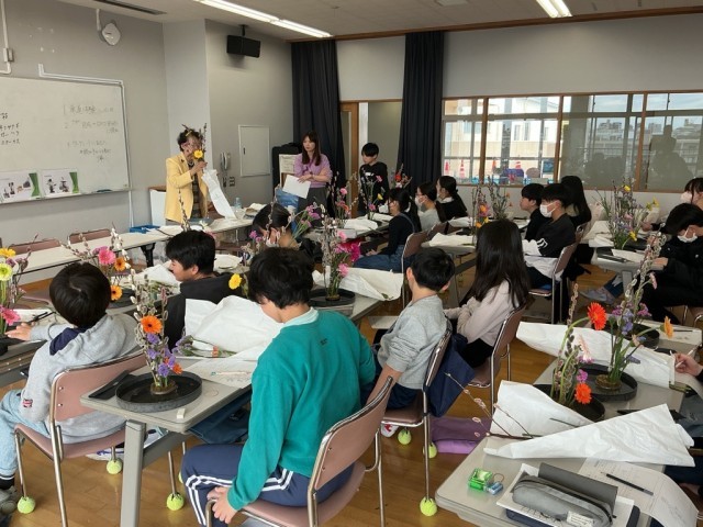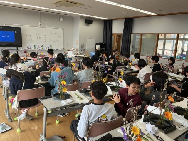 2月17日【6年生】華道体験 公開日 2026/02/17 更新日 2026/02/17 校長日記 6年生が華道に挑戦です。(今日は1組、2組、4くみ。明日は3組が体験します。)講師の先生から華道の成り立ちや歴史について教えていただき、いざ体験です。なかなかできない貴重な伝統文化の体験になりました。みんな納得する作品が仕上がったようです。講師の先生方、ご指導ありがとうございました。 +3 いいね(0)