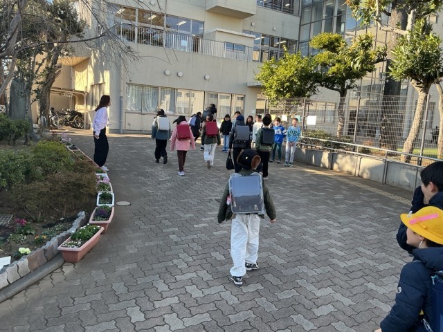 今週は3組があいさつ当番です。冷たい風が吹く中でしたが元気にあいさつしてくれていました。