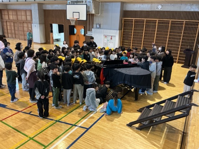 2月25日【集会委員会企画】 公開日 2026/02/25 更新日 2026/02/25 校長日記 今週、来週は、集会委員会が企画した「隠し芸週間」です。午前マイタイムの時間に、応募があった隠し芸を子どもたちが披露してくれています。昨日は、身体の柔軟さ。今日はピアノの披露でした。 +1 いいね(3)
