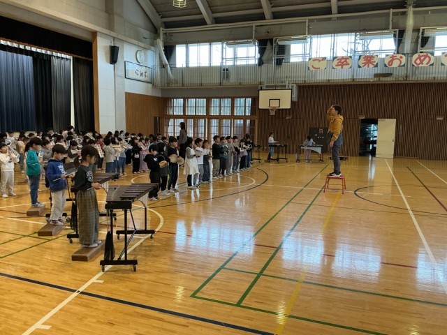 来週の木曜日(3/5)の音楽集会で、音楽学習の成果を全校児童に発表します。合唱と合奏をそれぞれ1曲ずつ発表します。ちょうど合奏の練習をしていました。