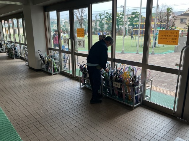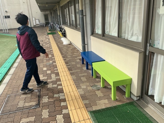 昨日から降り続いた雨が上がりました。午前マイタイムに遊具が使えるように用務主事さんが遊具についた雨水を拭いてくれていました。傘もきれいに直してくれていました。見えないところでいつも子どもたちのために環境を整えてくれています。写真のベンチも廃材を利用して用務主事さんが作ってくれました。ありがとうございます。