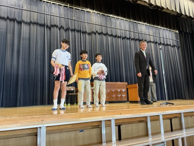 3月9日【全校集会】 公開日 2026/03/09 更新日 2026/03/09 校長日記 今日の全校集会は、表彰とPTAから寄贈品の紹介をしてもらいました。表彰はバスケットボール、ドッジボール大会、東京都公立学校美術展覧会の表彰でした。PTAからは体育用具と図書(本)を寄贈していただきました。PTA会長に区長からの感謝状をお渡ししました。ありがとうございました。大切に使わせていただきます。 +6 いいね(0)