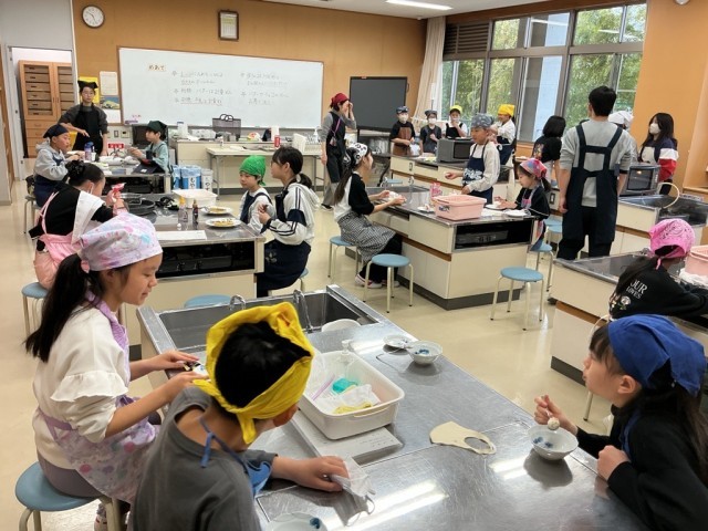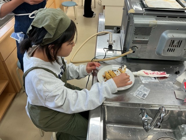 3月10日【5年生】家庭科 公開日 2026/03/10 更新日 2026/03/10 校長日記 『いっしょに「ほっとタイム」』6年生に続いて、5年生もスイーツ作りに挑戦です。家庭科室から甘い匂いが漂ってきました。子どもたち楽しそうに実習に取り組んでいました。校長先生もお裾分けいただきました。甘くておいしかったです。 +4 いいね(0)