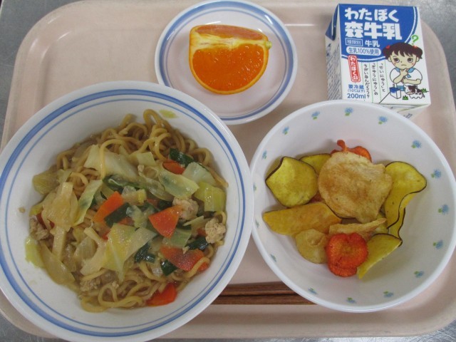 碑みそラーメン、エコ野菜チップス、せとか、牛乳