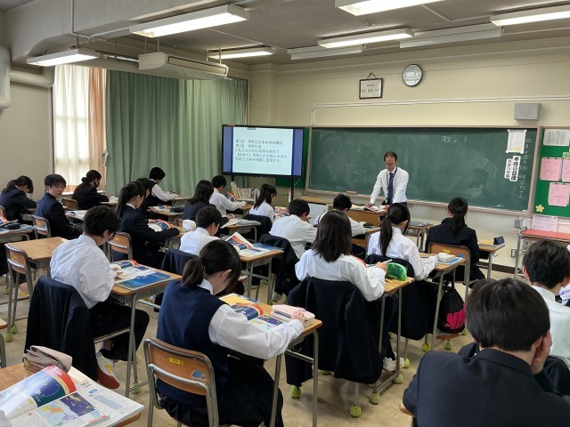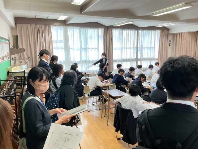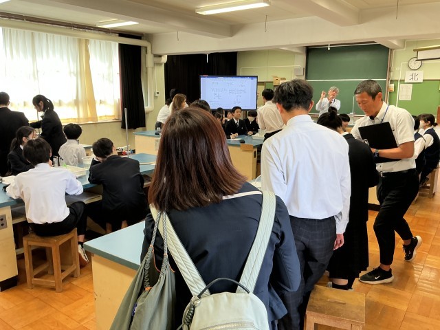 今日は小中連携の日です。目黒南中に4校の小学校の教員が授業参観に来ています。碑小の卒業生も熱心に学習に取り組んでいました。