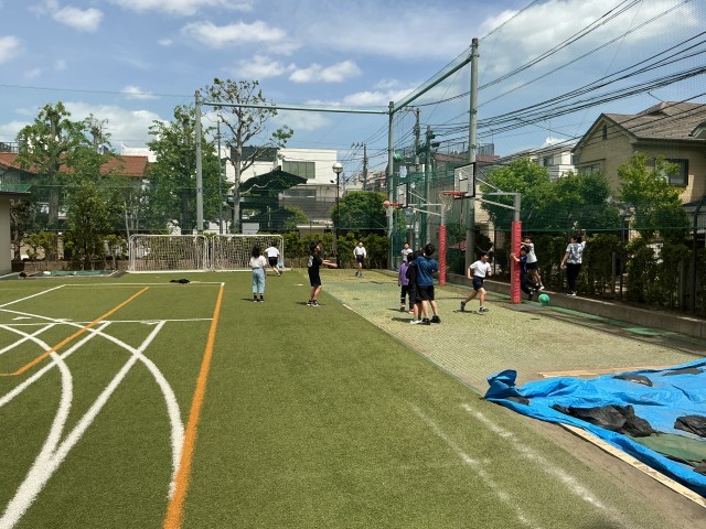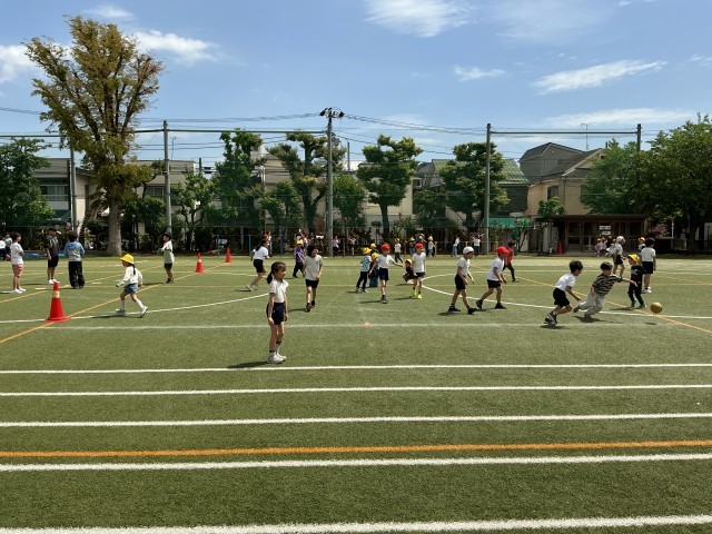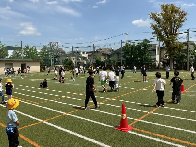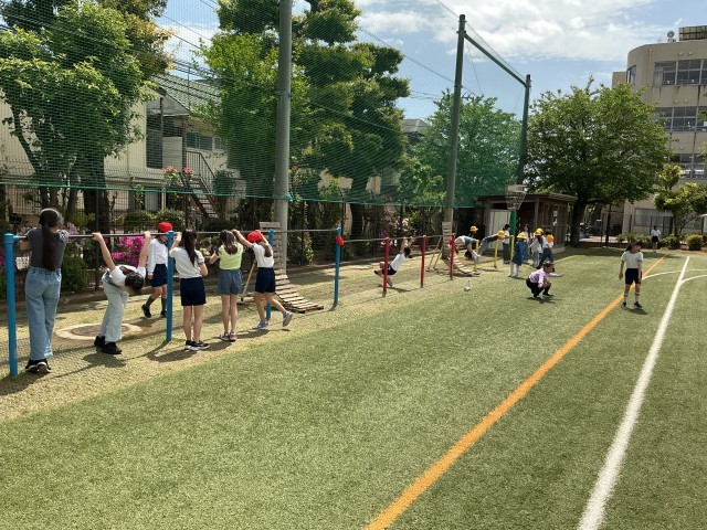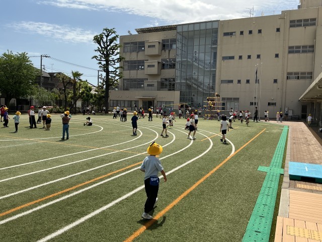 よい天気です。清々しい青空のもと子どもたち元気に校庭遊びをしていました。