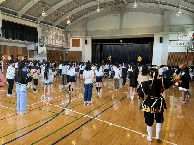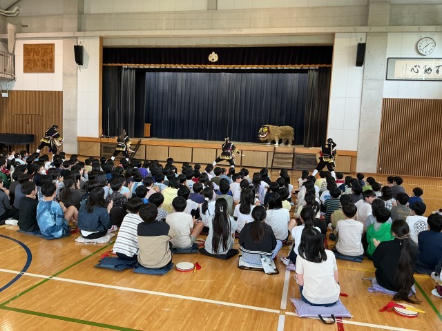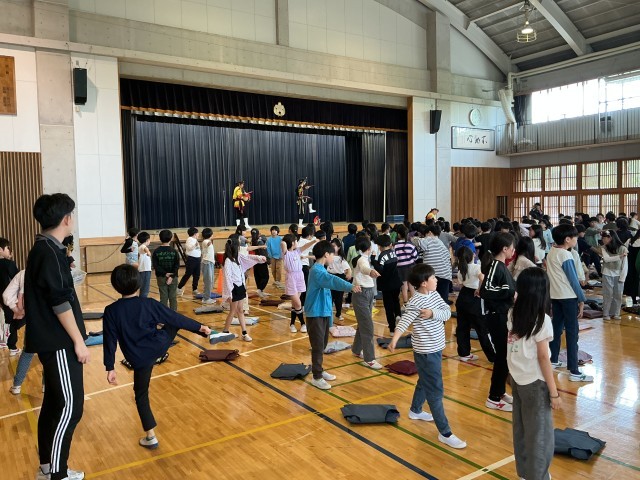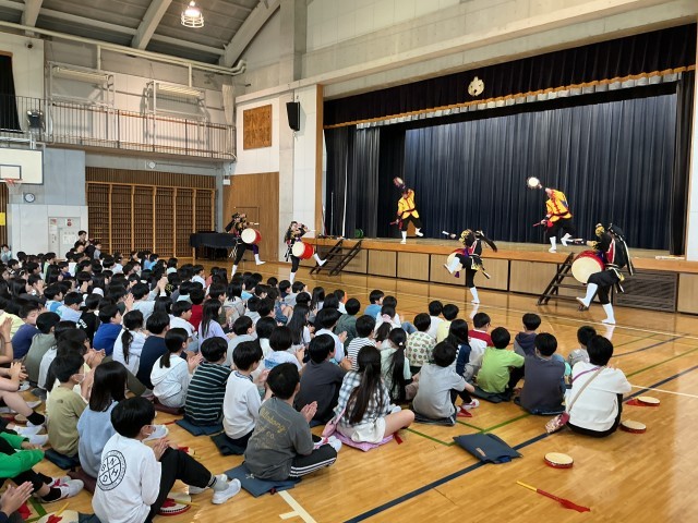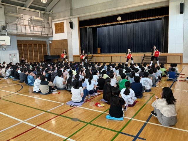 「琉球舞団 昇龍祭太鼓」の方々をお招きして、沖縄の文化に触れる体験をしました。4年生、5年生これからどんなふうに沖縄が学習に絡んでくるのでしょうか。講師でお越しいただいた先生方ありがとうございました。