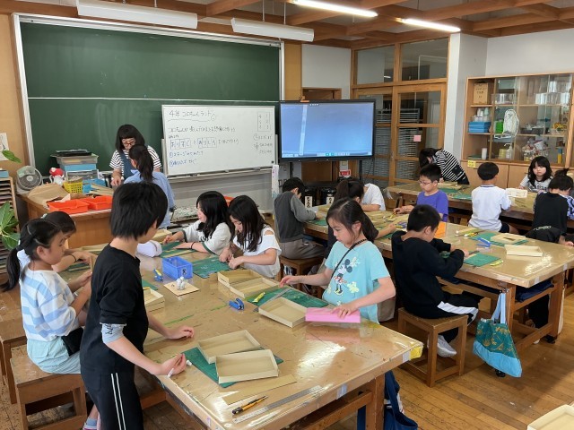 紙工作「コロちゃんランド」先週作った起き上がりこぼしのコロちゃんが楽しめるような遊び場を想像しながら表現していました。