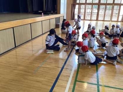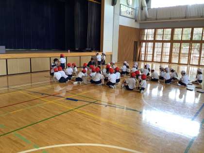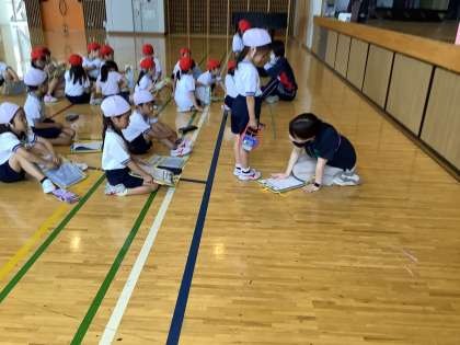 体力テストは午前中に紹介した5種目の他に握力と50m走、20mシャトルランの測定があります。この3種目はそれぞれクラスごとに実施します。1年生、初めて持つ握力計にドキドキです。