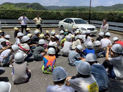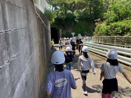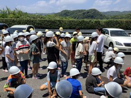 宿舎での避難訓練です。避難経路を確認していざという時に備えます。この後、食堂でお弁当です。
