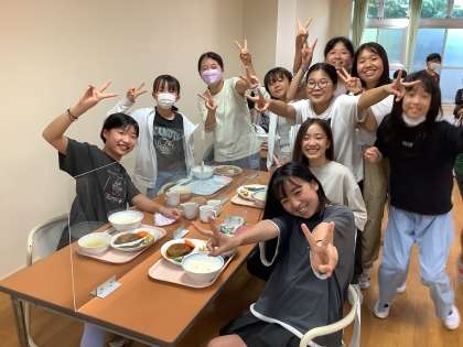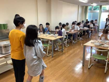 今日も朝から充実した活動でした。カッターボート体験で体も使い、プランクトン観察で頭も使いました。この後、キャンプファイヤもあります。レク係が頑張って準備してきました。みんなで盛り上がりましょう!そのためにしっかり食べましょう。「いただきます。」