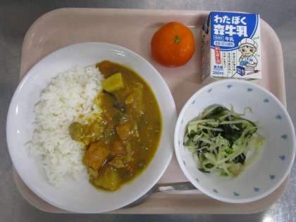 令和5年7月12日(水) 公開日 2023/07/12 更新日 2023/07/12 給食 ー今日の給食ー ・夏野菜カレーライス ・磯サラダ ・冷凍みかん ・牛乳 ー食材の産地紹介ー たまねぎ(兵庫県) にんじん(青森県) かぼちゃ(山梨県) トマト(青森県) ピーマン(茨城県) ズッキーニ(長野県) いいね(0)