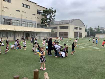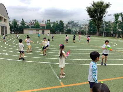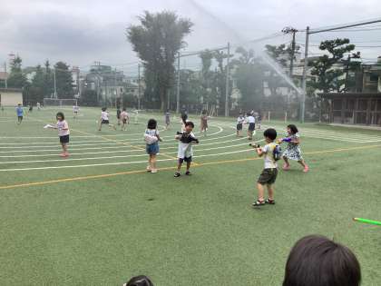 水遊びの様子です。本当に楽しそうです!大きな歓声が校庭に響いてました。