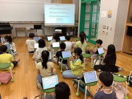 「アチャ パチャ ノチャ」運指やタンギングに気を付けながらリコーダーの練習をしていました。みんな真剣なよい表情です。