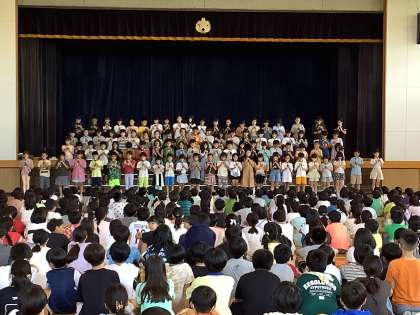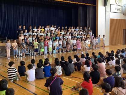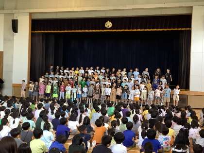 7月19日【3年生】音楽 公開日 2023/07/19 更新日 2023/07/19 校長日記 3年生は4月から音楽専科の先生と音楽の学習に取り組んでいます。今日はここまでの学習の成果を発表してくれました。代表の言葉のあと、まずはリコーダー奏「はらっぱのうた」きんちょうしながらも学年で心を合わせて演奏できました。続いて合唱「たいようのサンバ」自分たちで考えた振り付けでとっても楽しそうに歌っていました。 いいね(0)