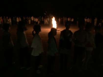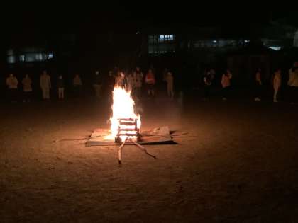 昨夜、雨の影響で延期になったキャンプファイア。今夜は無事実施できました。闇夜を照らす炎の灯りが幻想的です。