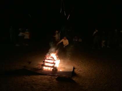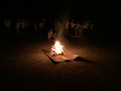 炎を囲んで第2部。「木こりとリス」「ジャンケン列車」で盛り上がりました。