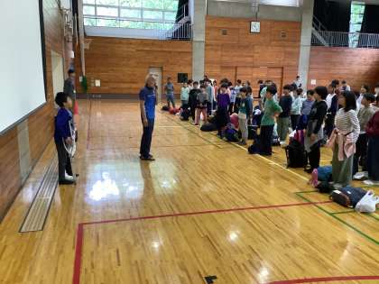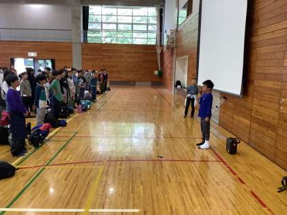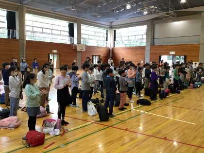 体育館で閉園式です。お世話になった学園の管理人さんにしっかりとお礼の気持ちを伝えることができました。