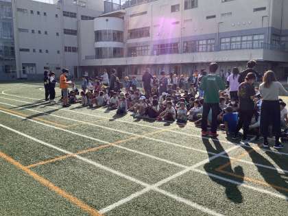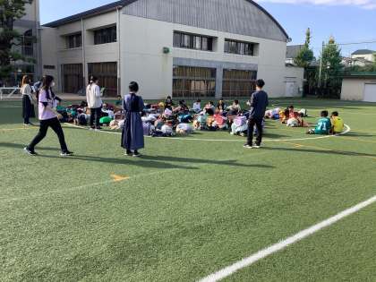 今日の避難訓練は下校時の地震発生を想定しての訓練でした。災害はいつ、何時起こるかわかりません。いつ、どこでも落ち着いて行動できるように指導しています。