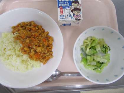 令和5年12月6日(水) 公開日 2023/12/06 更新日 2023/12/06 給食 ー今日の給食ー ・キーマカレー ・グリーンサラダ ・牛乳 ー食材の産地紹介ー にんにく(青森県) しょうが(高知県) たまねぎ(北海道) にんじん(千葉県) ピーマン(茨城県) きゃべつ(愛知県) きゅうり(宮崎県) こまつな(東京都) いいね(0)