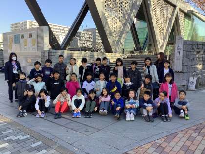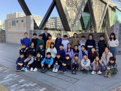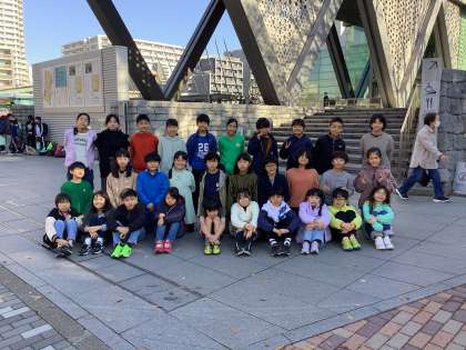 東京都現代美術館に到着しました。見学前にクラスごとに集合写真撮影です。