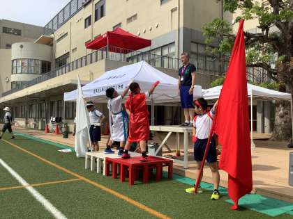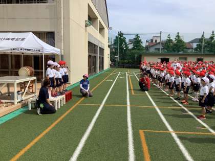 運動会前、最後の全体練習です。開会式の通し練習の様子です。