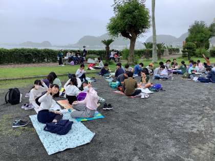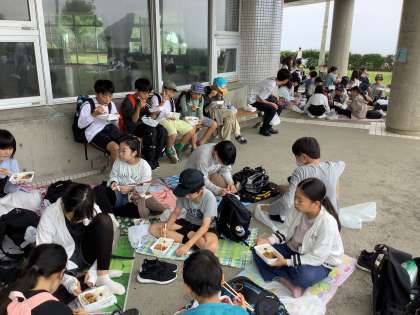鴨川青年の家に戻ってお昼ご飯です。みんなお弁当を美味しそうに食べていました。