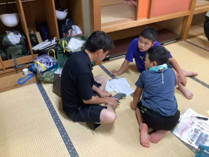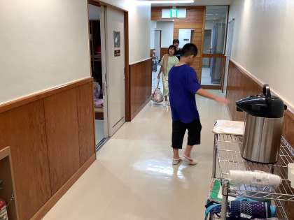 入浴後、就寝準備をして消灯です。ぐっすり寝ましょう。「おやすみなさい。」