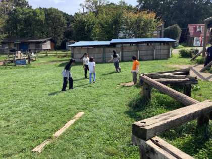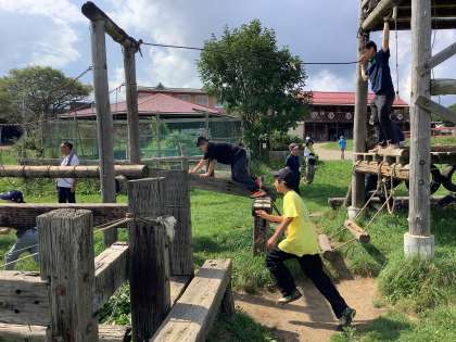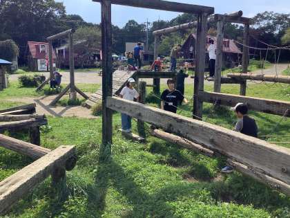 昼食後の腹ごなし。みんなでアスレチックやおにごっこをして楽しく遊んでいます。。