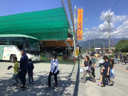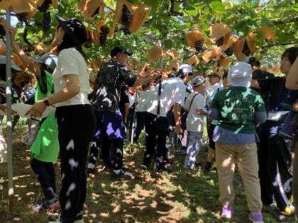 9月13日【4くみ】八ヶ岳3日目 公開日 2024/09/13 更新日 2024/09/13 校長日記 見晴し園でぶどう狩り。一粒試食です。おいしいぶどうもお土産で持ち帰ります。見晴し園を出発して、東京に戻ります。予定通り行程が進んでいます。見晴し園は甲府市でなく笛吹市でした。すみませんm(_ _)m いいね(0)