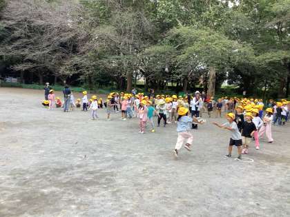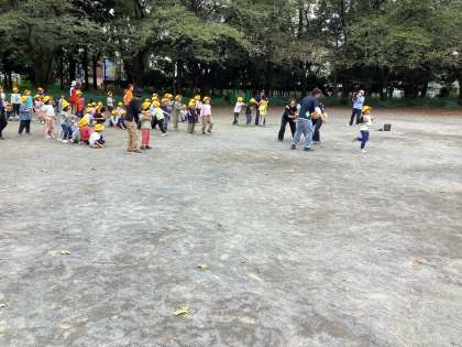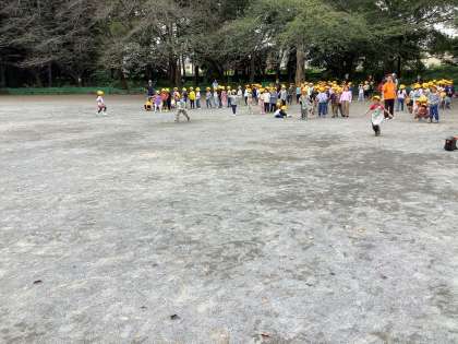 猛獣狩りの後は、クラス対抗の新聞紙リレーです。応援にも熱が入ります。