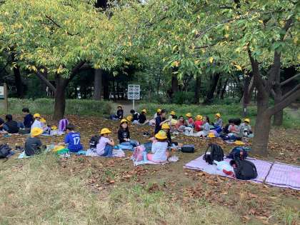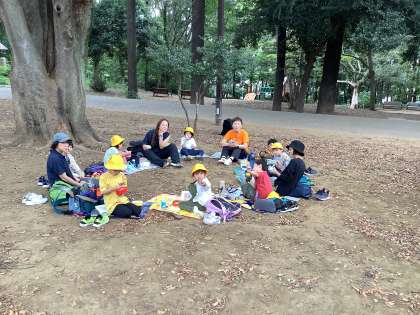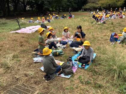 場所を移動してお弁当タイムです。たくさん遊んでお腹が空いたようです。「いただきます!」
