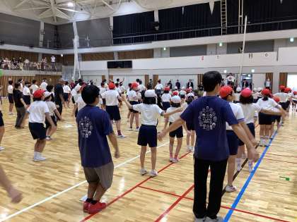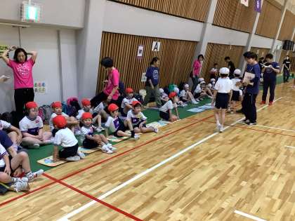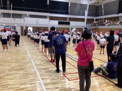 開会式、準備体操を終えて、いよいよ競技開始です。ドキドキの待ち時間です。