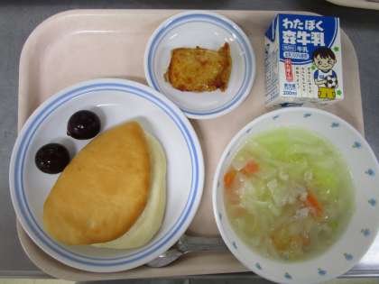 令和6年10月18日(金) 公開日 2024/10/21 更新日 2024/10/21 給食 ー今日の給食ー ・ミルクパン ・スパイシーチキン ・ひよこ豆のスープ ・ぶどう ・牛乳 ー食材の産地ー にんにく(青森県) しょうが(高知県) たまねぎ(北海道) にんじん(北海道) きゃべつ(群馬県) セロリ(静岡県) じゃがいも(北海道) いいね(0)