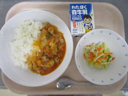 令和6年10月21日(月) 公開日 2024/10/21 更新日 2024/10/21 給食 ー今日の給食ー ・ごはん ・ジャバジ ・フレンチサラダ ・牛乳 ー食材の産地ー にんにく(青森県) たまねぎ(北海道) きゃべつ(群馬県) ピーマン(茨城県) じゃがいも(北海道) にんじん(北海道) きゅうり(岩手県) いいね(0)