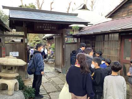 宮野古民家自然園にきています。昔の生活や道具を見せてもらいます。