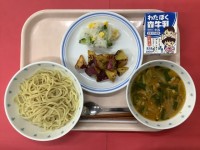 牛乳つけめん大根サラダ大学芋 <主な食材の産地>豚肉(茨城)  さつまいも(熊本) にんにく(青森) 生姜(高知) にんじん(千葉) 緑豆もやし(静岡) 長ねぎ(宮城) に...