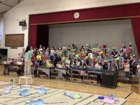学習発表会がいよいよ1週間後に迫ってきました。1年生の体育館での練習の様子です。舞台に立って、振り付けもしながら合奏の練習をしました。どこまで仕上がるか、本番が楽しみです。