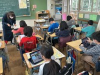 4年生の外国語活動の学習の様子です。今日はグループごとに、興味のある場所について調べ、英語で紹介するという学習をしました。いろいろな場所を調べ、ワークシートに英語で書いたり、全体の前で紹介したりしてい...