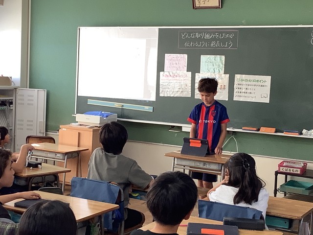 5年生のFSPJ発表会の様子です。3・4・6年生は、先週行いましたが、5年生は宿泊行事の関係で、この日に行いました。今年度は初の試みとして、発表会の様子を保護者の皆様にも公開させていただきました。様々なスタイルで発表している姿が印象的でした。