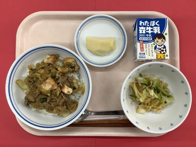 豚肉(国産) 生揚げ(大豆:愛知、佐賀) 精白米(秋田) 玄米(秋田) 生姜(高知) 緑豆もやし(静岡) 長ねぎ(青森) キャベツ(群馬) チンゲンツァイ(茨城) 切干し大根(宮崎) きゅうり(埼玉) りんご(青森)