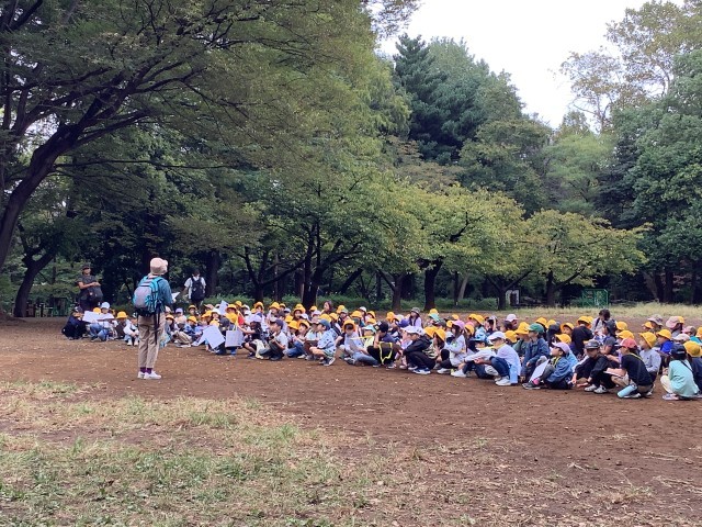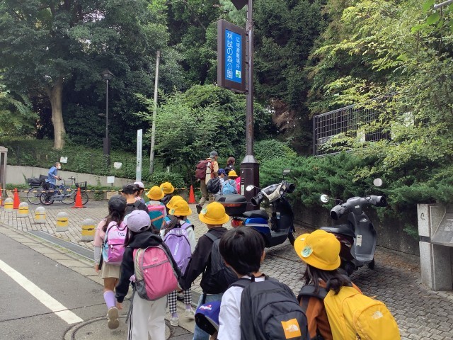 今日は1・2年生が、林試の森公園に、遠足に出かけました。片道、約45分ほどの道のりですが、1・2年生のペアで仲よく手を繋ぎながら、安全に気を付けて、公園に行きました。