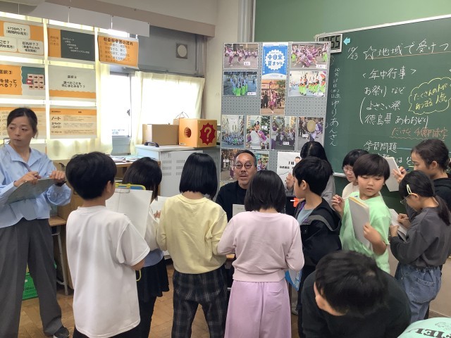 今日は4年生が、社会科の授業で研究授業を行いました。4年生は「地域で受け継がれてきたもの」という学習をしています。それぞれの地域で大切に受け継がれてきた「お祭り」をテーマとして単元内自由進度学習を進めています。3名のゲストティーチャーの方に来ていただき、いろいろな疑問に答えていただきました。深い学びになったようです。