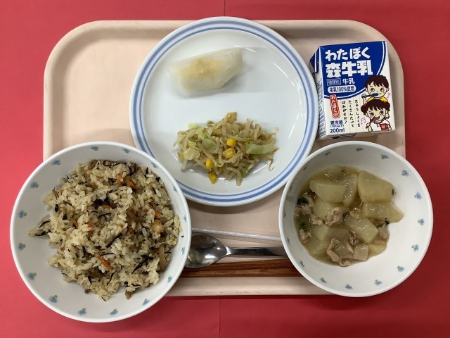 鶏肉(国産) ひじき(韓国) 大豆(北海道) 油揚げ(大豆:愛知、佐賀) 豚肉(国産) 精白米(秋田) もち米(国産) 精麦(国産) にんじん(北海道、青森、茨城) ごぼう(群馬) 大根(北海道) 生姜(高知) 小ネギ(福岡) 緑豆もやし(静岡) キャベツ(千葉) 冷凍ホールコーン(北海道) 和梨(宮城、長野、栃木)