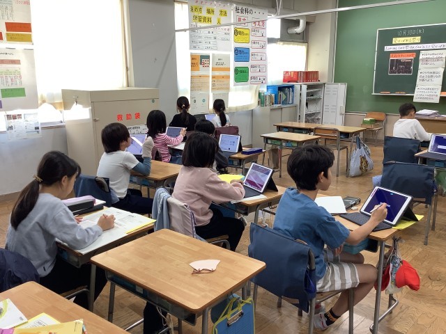 4年生の社会の学習の様子です。先週は研究授業を行いましたが、引き続き「地域で受け継がれてきたもの」という学習をしています。地域のお祭りに携わる人々の想いや苦労を深く知るために、一人ひとりが調べ学習を進めています。