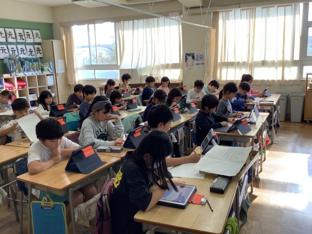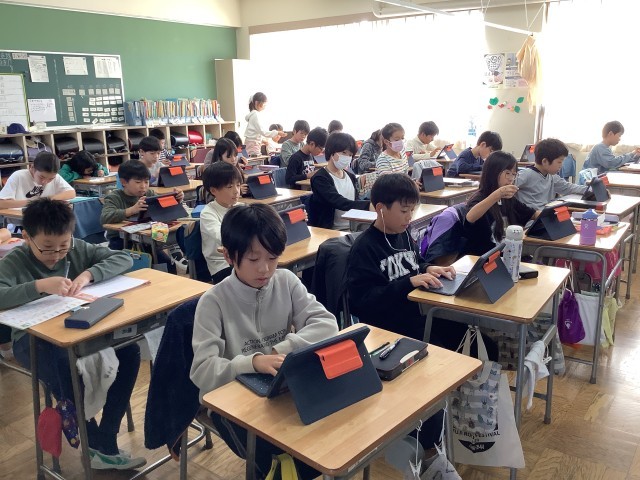 6時間目は、マイタイム(自学自習タイム)でした。40分授業午前5時間制で生み出した時間を活用するために、子どもたちは自分で学習計画を立て、一人ひとりが個別学習を進めていました。