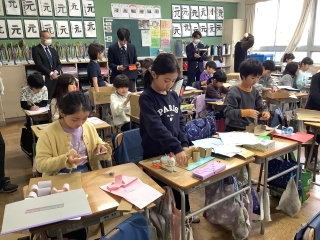 今日は6時間目に、3年生全学級で、「校内研究授業」を行いました。本校では「自律した児童の育成」を研究主題として、自由進度学習を中心に研究を進めています。シンカ(深化・進化・新化)をテーマとして、試行錯誤しながら研究を進めています。今回は、国語・理科・図工の3教科合科型自由進度学習でした。