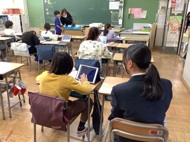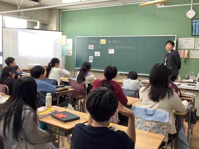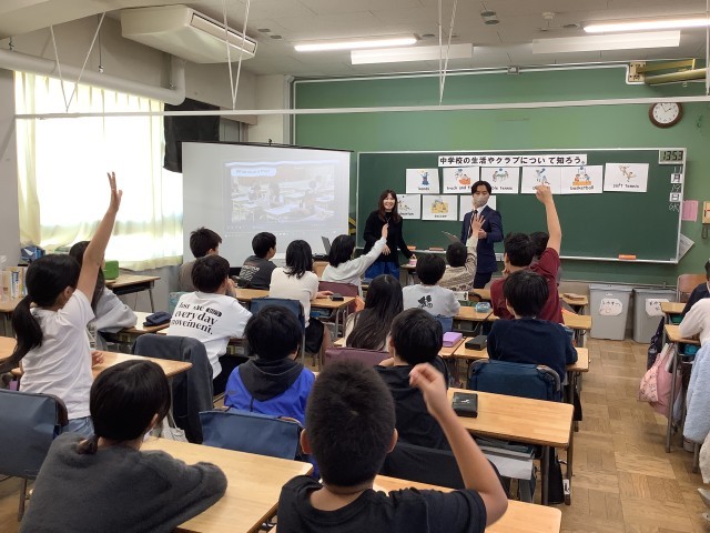 今日は今年度第3回目の「小中連携の日」でした。これは、目黒中央中学校区の小学校4校と中央中学校の先生方などが集まって、授業を見合ったり、協議会をしたりする取り組みです。本校では、中央中学校の先生方に授業をしていただいたり、生徒から教えていただいたりしました。