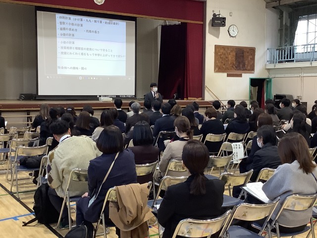 小中連携の日の協議会の様子です。授業の後の分科会では、教科や職種ごとに集まり、授業の内容について話し合ったり、よりよい連携のあり方について協議したりしました。また全体会では、分科会から報告したり、中学校の先生方からお話いただいたりしました。今後もしっかりと連携を深めていきたいと思います。