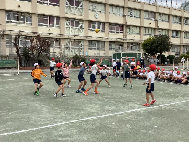 3年生の体育の学習の様子です。3年生はゲーム領域のゴール型ゲームでハンドボールの学習を進めていきます。今日は学年合同で、オリエンテーションとして、ルールの説明や学習の進め方について学習しました。これからの学習が楽しみです。